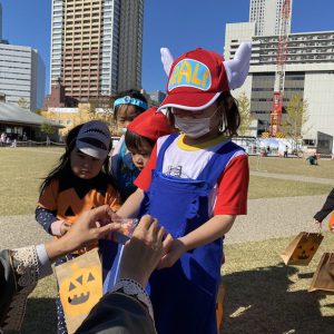 Halloweenのイベントの日は、お菓子をもらいに豊島消防署とイケ・サンパークまで行きました。青空の下で、気持ち良く過ごすことができました。