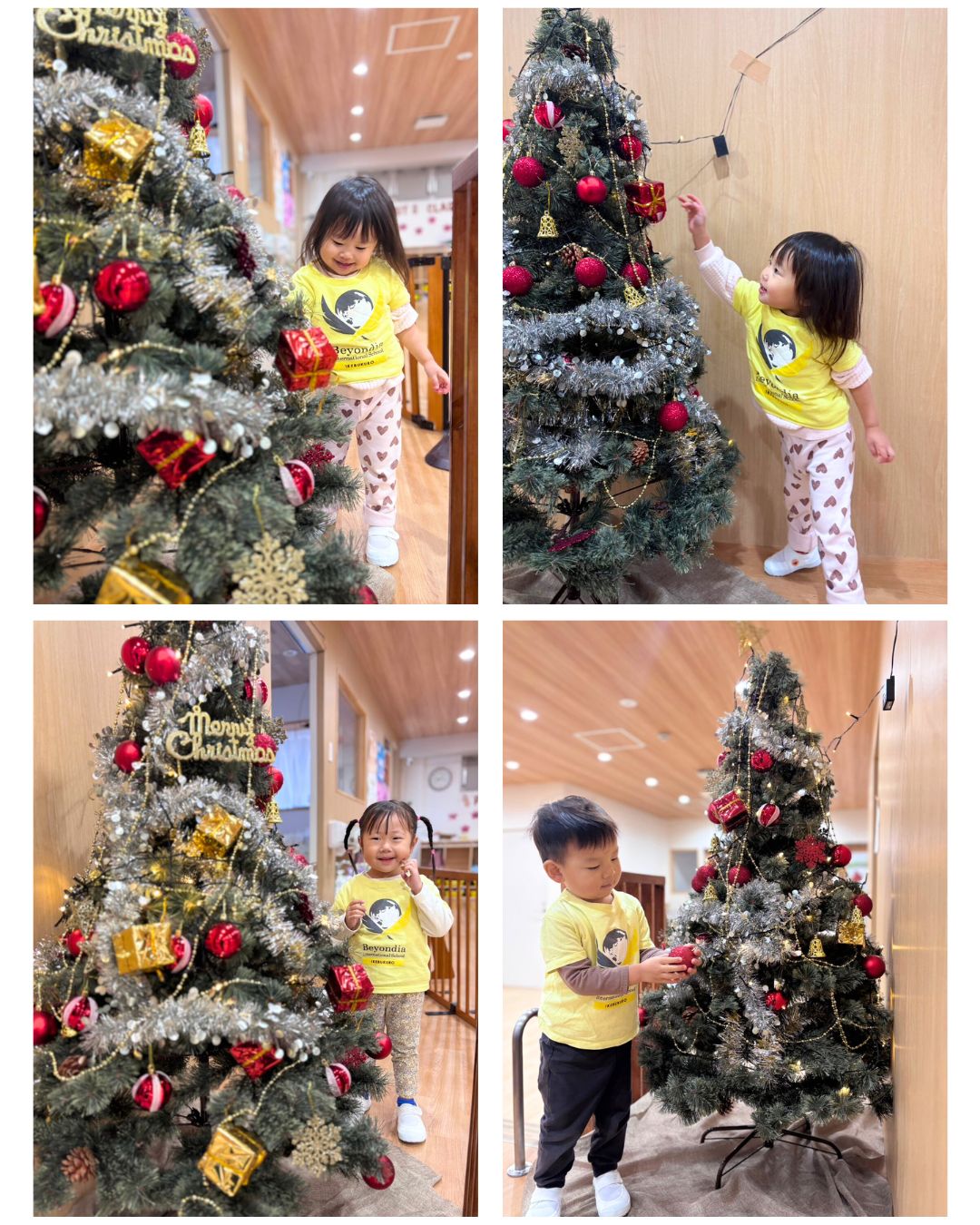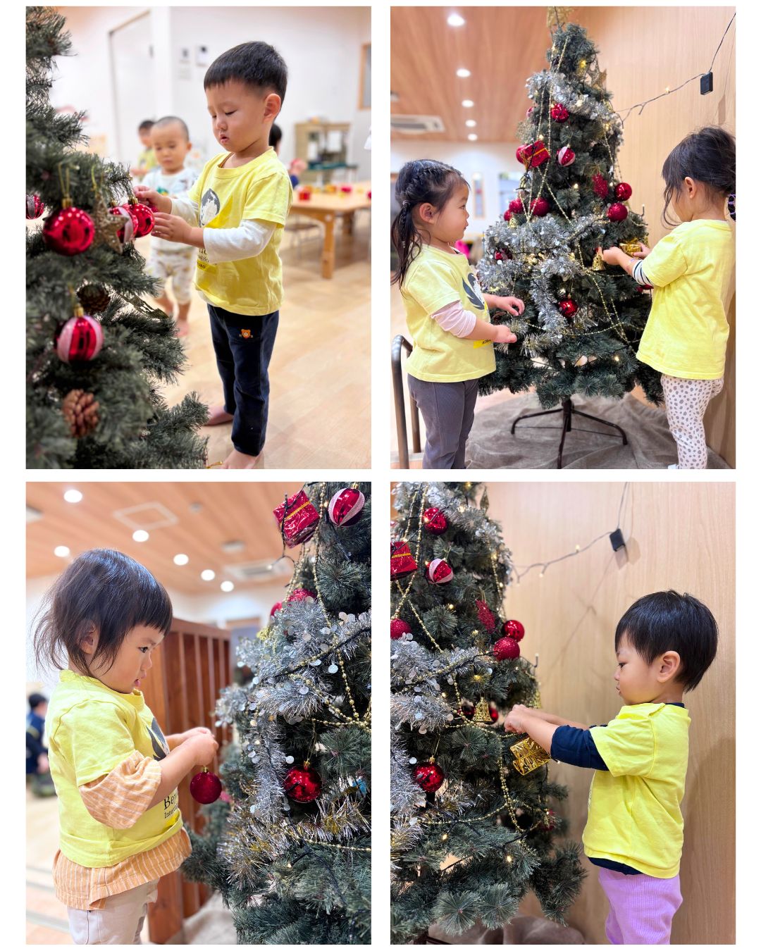 ツリーの飾り付けは、協力する大切な機会にもなりました。高い枝に届くようにお互いに助け合ったり、飾りを分け合ったり、友だちの作品を褒め合ったりしながら、チームワークの大切さや、みんなで作り上げる楽しさを学びました。