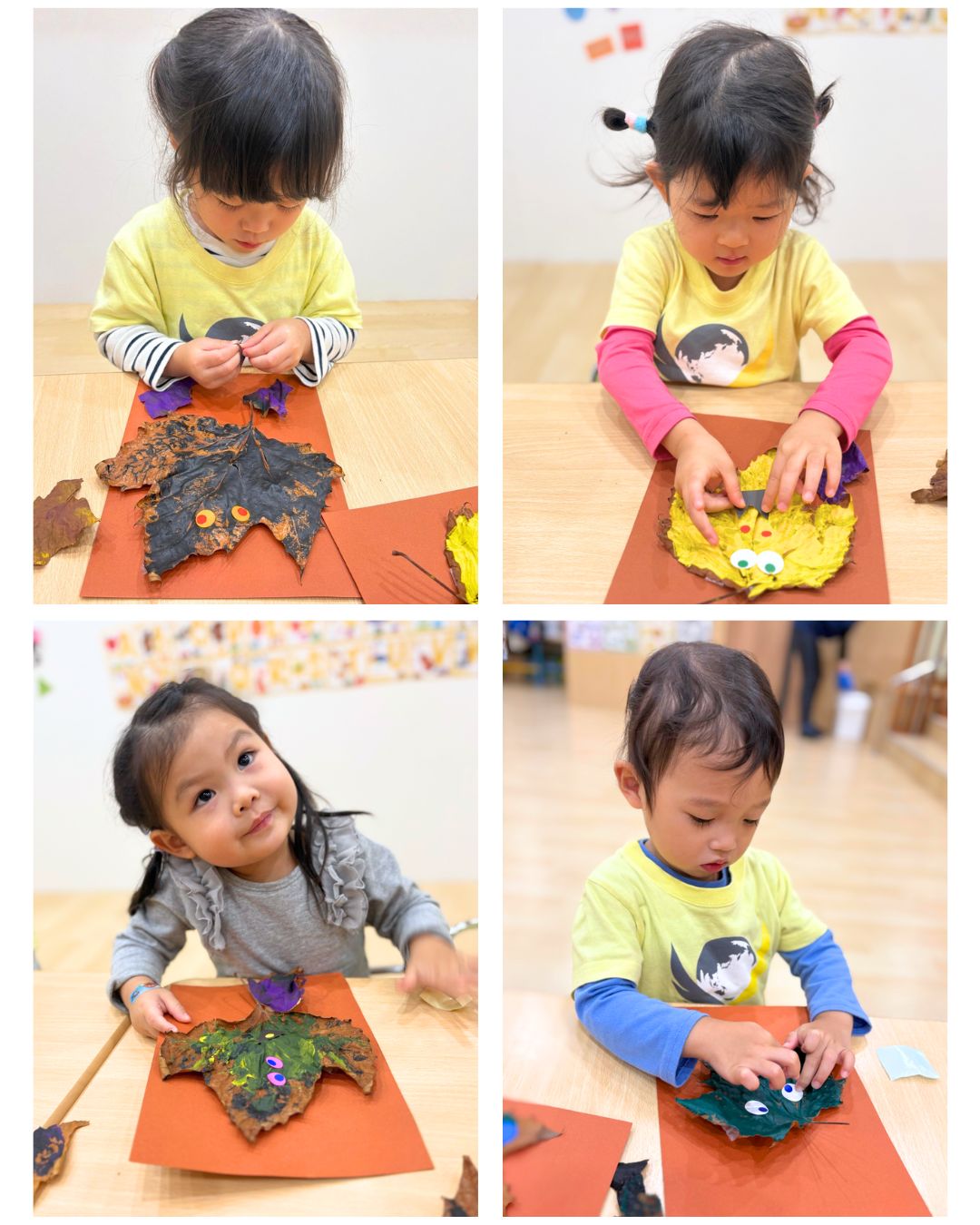 In the afternoon, we asked the Pumpkins what they wanted to make with their leaves, and they all excitedly shouted, “Monsters, Ms. Annie!” This set the tone for a fun and creative art session.