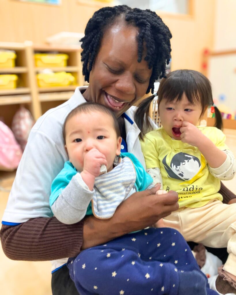 ベビーにとって、このレッスンは小さな幼稚園コミュニティとの最初の出会いになることが多いです。親と一緒に参加しながら、他の子どもや大人と同じ空間で過ごすことで、集団での生活や活動に少しずつ慣れ、協力して遊ぶ経験や社会的なルールの理解が育まれます。少し年上のパンプキンやピーナッツのお友だちが音楽に合わせて動く姿を観察することで、グループで学ぶ楽しさや集中力、好奇心、自信も自然に育まれます。